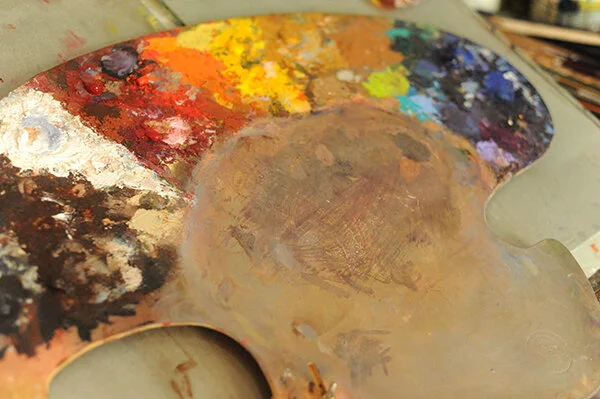 once i brought a palette to an art class and i had forgotten to scrape the paint off from the last session, so i didn’t have a clean center in the middle to work from, and because of this, i felt shame. shame! for having some old paint on my palette. i now recognize that shame for what it was: shame at being a beginner, for not knowing what i was doing (which i didn’t), shame at posing as an artist, but not really being one. and now, standing at the other side of that, with my feet firmly planted in front of my easel, i say fork that. how would any of us get anywhere without being a beginner? can we change that mindset? can we praise beginners? can we praise not knowing, but doing it anyway? can we praise failure? yes, please. we are all artists - let’s let ourselves play and fail and try and feel good doing it. i am still doing that, only i’m a lot more comfortable with the label, and with all the forgotten, crusty paint on my palette.